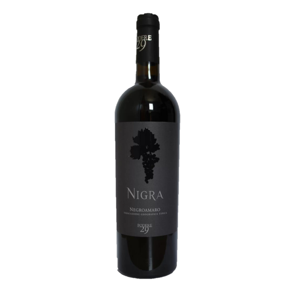 O Nigra Negroamaro Puglia IGP é um vinho produzido através de Fermentação malolática, estabilizando por 6 meses em tanques de açoinoxidável para favorecer as características da uva, que uma vez estagiando em garrafas, adquire grande melhora, revelando toda a sua vivacidade e sua agradabilidade no paladar.